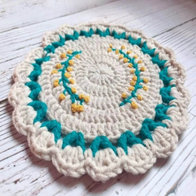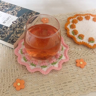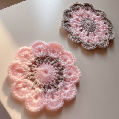 A Set of 2 Crochet Coaster Flower | Desk Decorations